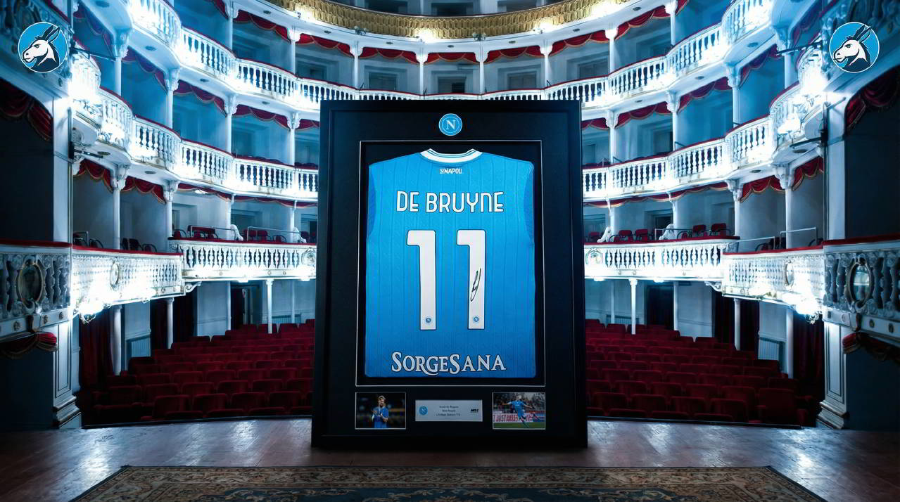 Per finanziare la rinascita di questo tempio laico, il Napoli ha scelto di mettere sul piatto il suo “gioiello” sportivo. Attraverso la piattaforma MatchWornShirt, partner ufficiale del club, sono state messe all’asta 50 cornici in tiratura limitata, contenenti ciascuna una maglia autografata e autenticata da Kevin De Bruyne. L’intero ricavato, senza alcuna trattenuta, sarà devoluto al Comitato per la rinascita del Teatro Sannazaro.